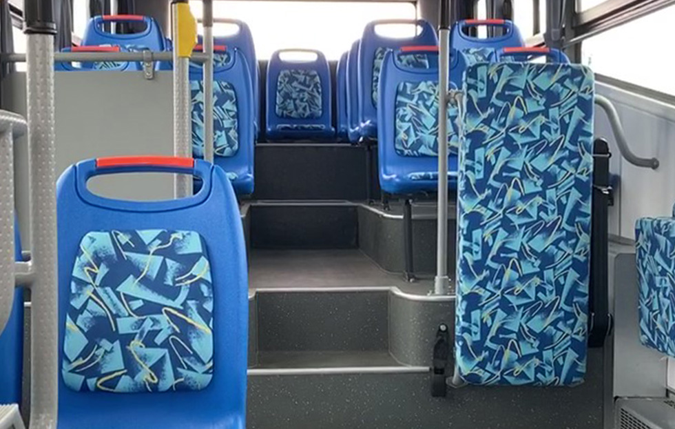 Interior uses durable bus seats, aluminum alloy ducts + ad lightbox design, environmentally friendly and easy to clean; LED guide lighting is soft and clear; equipped with fresh air defroster supporting internal and external circulation.