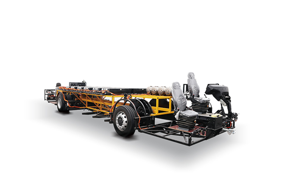 Chassis offers 315-423 kWh battery and multiple power configurations, high-speed train-grade pipeline layout, easy maintenance; metal parts treated for corrosion resistance and salt spray durability.