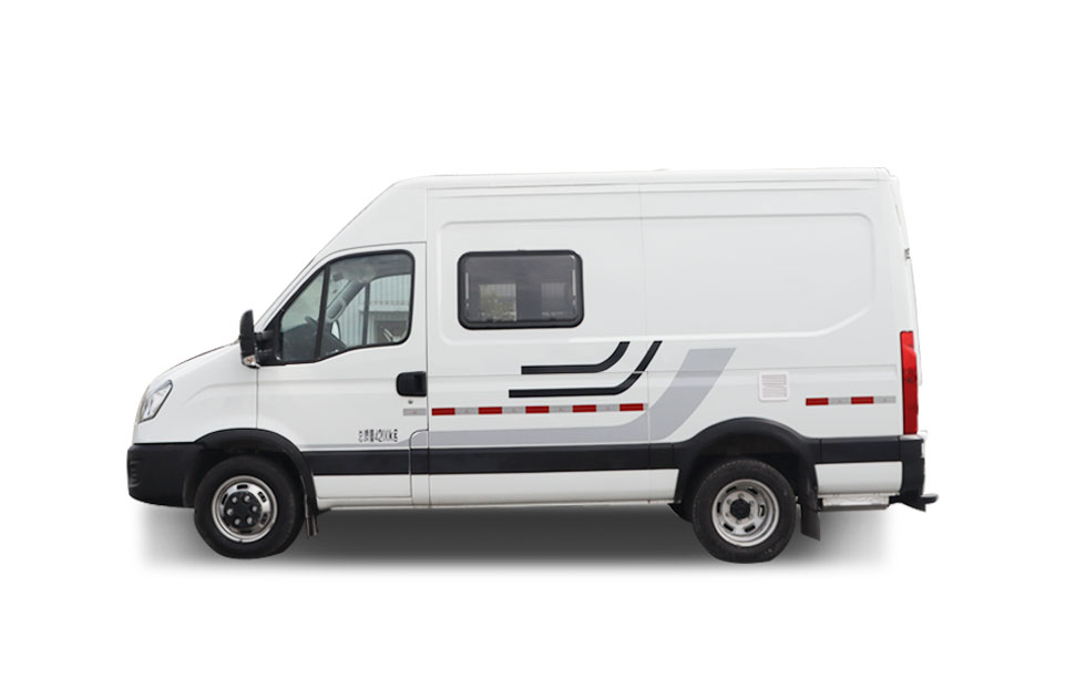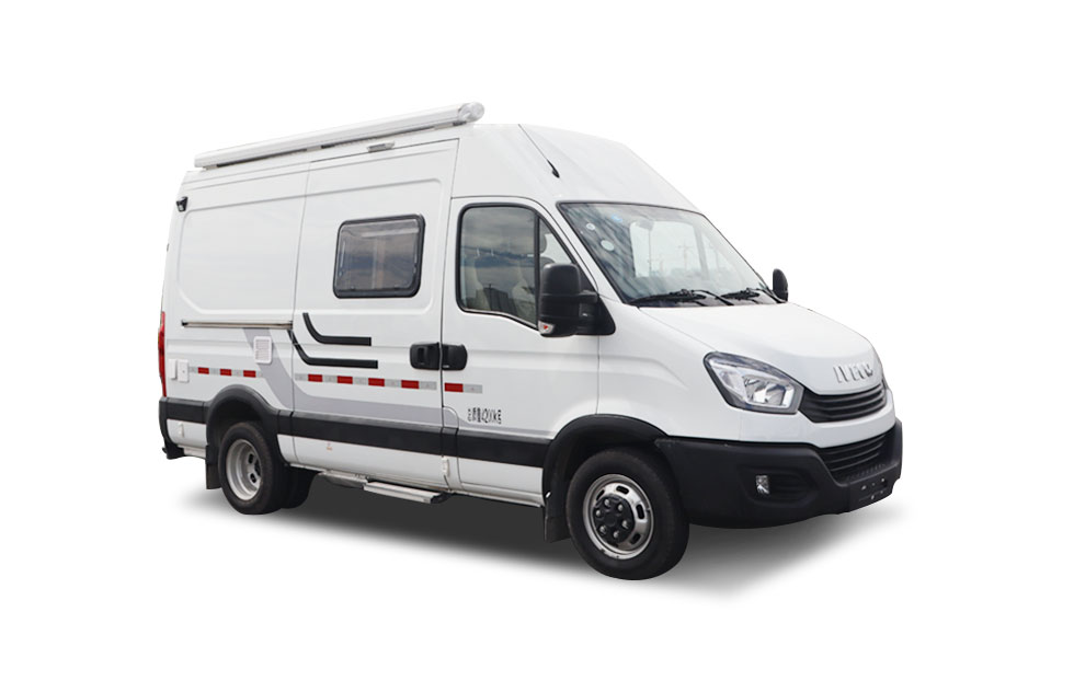 The vehicle is equipped with bedding, cooking appliances, and other camping equipment; the awning is optional and can be installed on either side or one side of the vehicle. Optional rear ladder; rooftop can optionally accommodate full or partial rooftop air conditioning, ventilation fan, mobile communication antenna, satellite antenna, and solar panels. Side and rear lower protective devices are integrated structures; rear lower protective device ground clearance: 360 mm. ABS system controller models: BOSCH ABS9, BOSCH ESP9; ABS system controller manufacturer: BOSCH. |